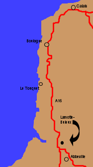 From Calais, take the A16 Autoroute, direction Boulogne-sur-Mer. Stay on